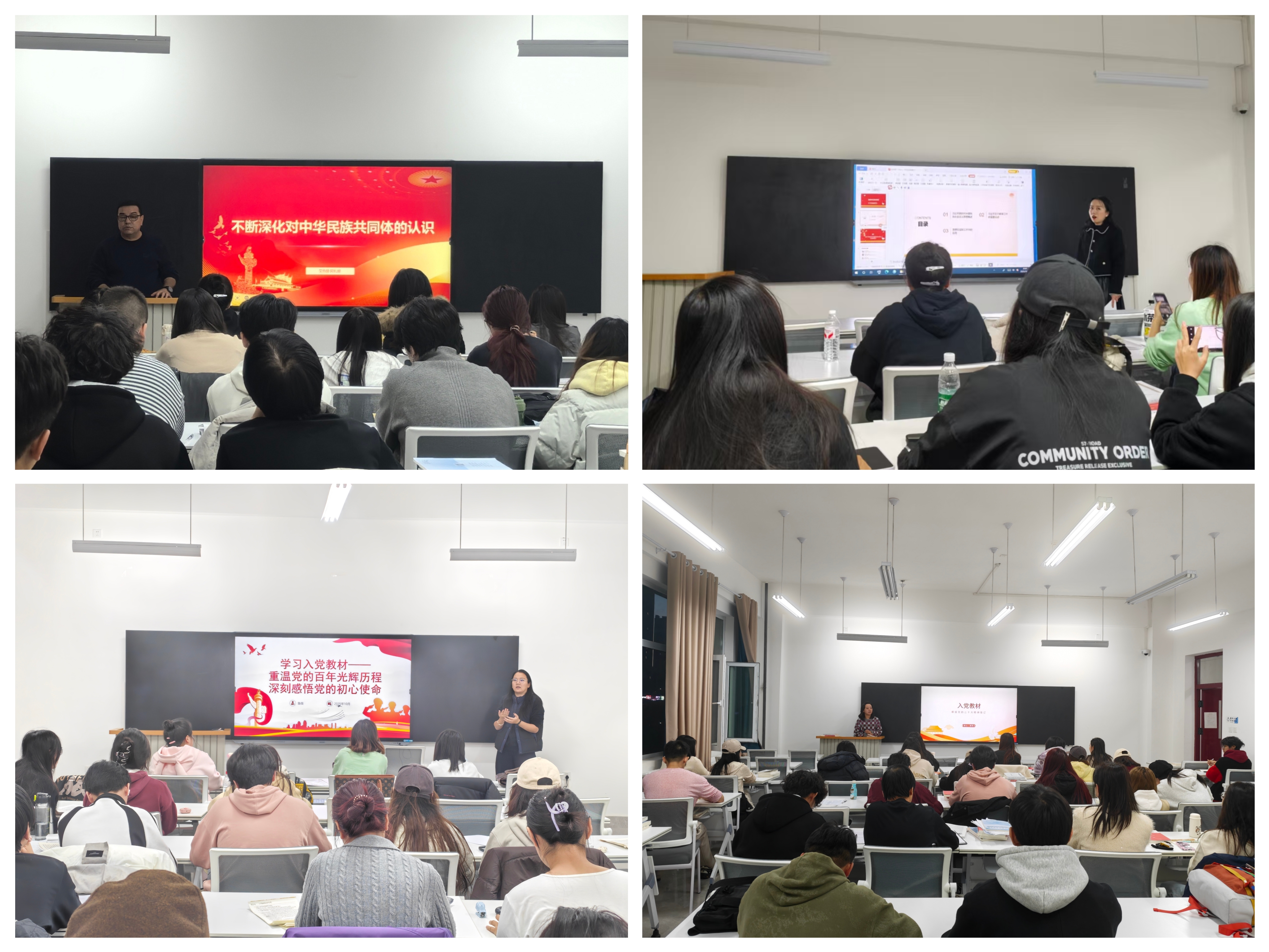 培训期间,邀请学院党委书记、各支部书记组成授课团队,课程内容兼具理论深度与专业特色。从“习近平新时代中国特色社会主义思想的核心要义”“习近平总书记关于新疆工作重要论述” 等理论课程,到“铸牢中华民族共同体意识”《入党教材》等特色专题,授课教师通过案例解析、互动研讨、影视片段赏析等多种形式,引导学生将党性修养与专业学习深度融合。