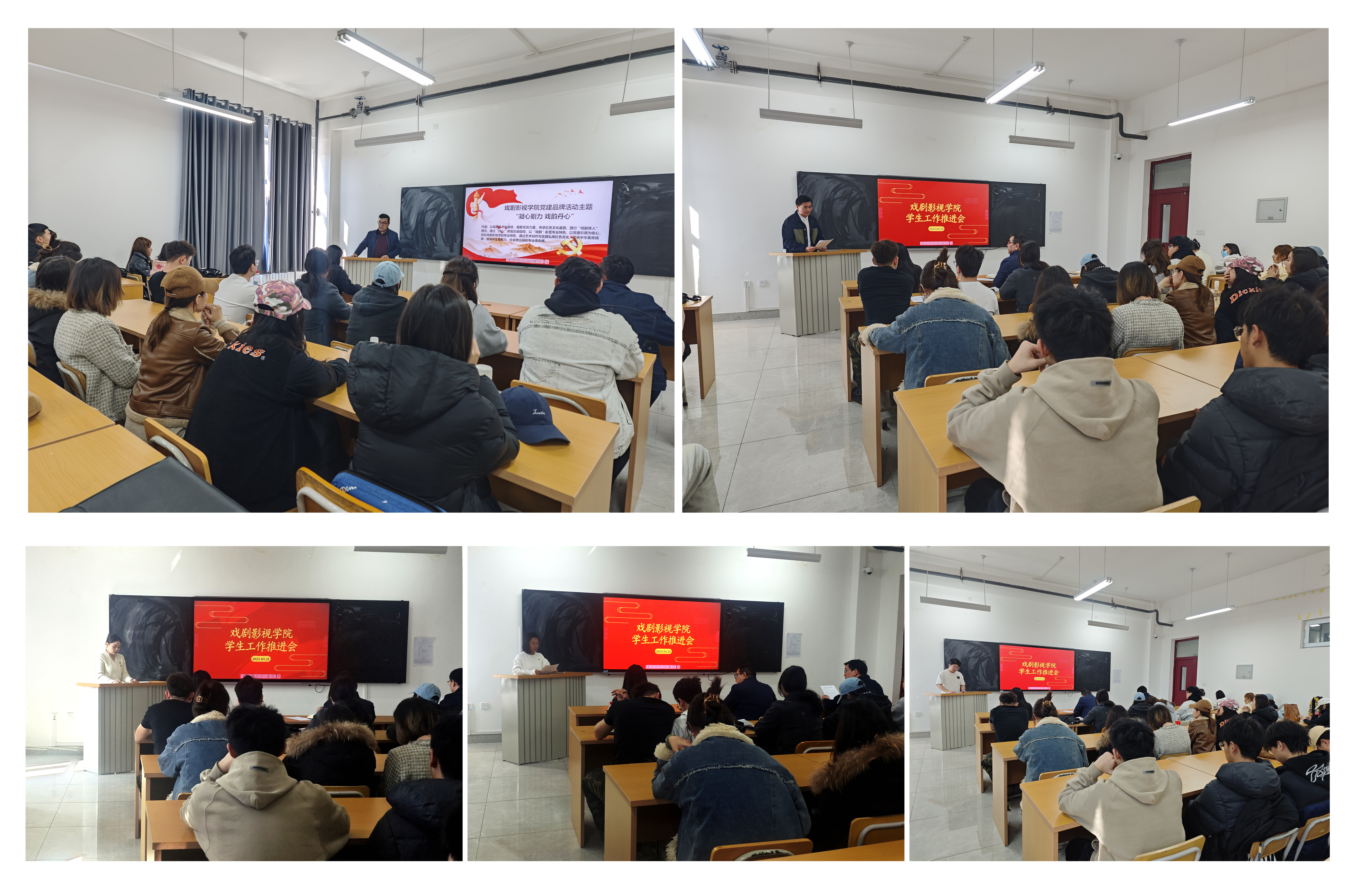 为提升戏剧影视学院新学期学生工作质量,鼓励学生积极参与到校园各项活动中来,2025年3月21日,学院召开学生工作推进会,党委书记、分团委、学工办负责老师及各年级学生代表共同参加了此次推进会。