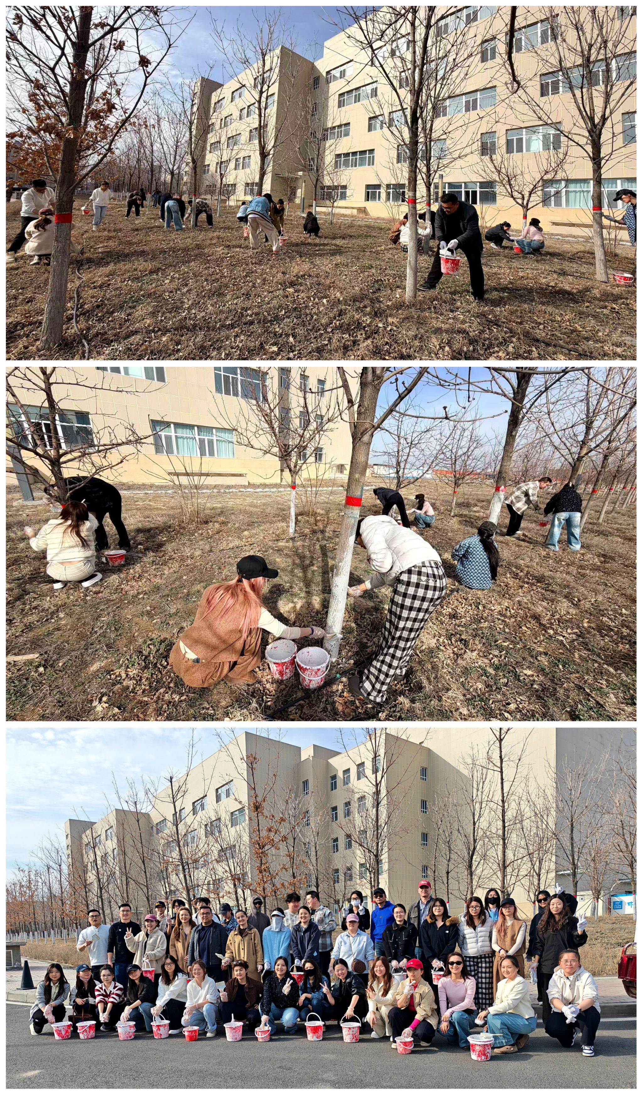 为积极响应生态文明建设号召,践行“奉献、友爱、互助、进步”的志愿精神,4月1日,戏剧影视学院师生党员共同开展了“青春护绿,美化校园”树木刷白活动。师生志愿者共40余人参加了此次活动,以实际行动为校园绿化贡献青春力量。